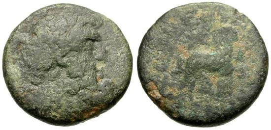 Laureate head of Zeus right