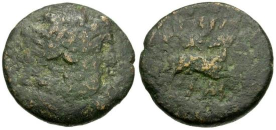 Laureate head of Zeus right