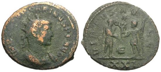 Title: Carinus (AD 283-285) Æ Antoninianus / Emperor and Victory