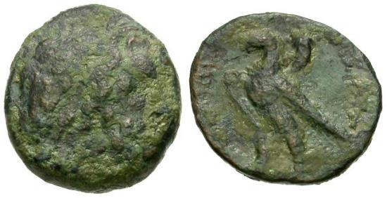 ΠΤΟΛΕΜΑΙΟΥ ΒΑΣΙΛΕΩΣ, eagle standing left on thunderbolt, wings closed, cornucopia on shoulder