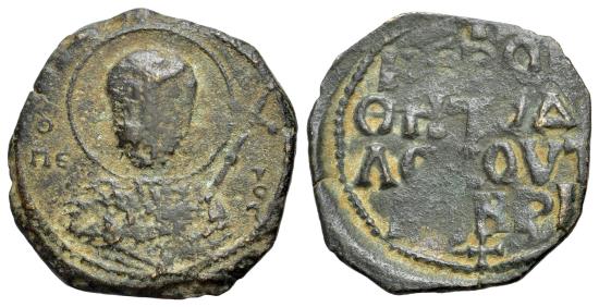 | Crusaders, Antioch. Tancred (Regent, 1101-03, 1104-12). Æ Follis Bust of St. Peter. R/ Legend in four lines |