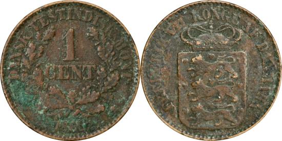 Danish West Indies, 1 cent dated 1868, struck under King Christian IX of Denmark. Very Good condition. S 20; H 28; KM 68. 4,7 g.