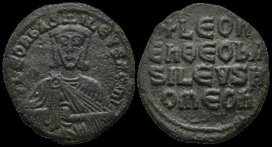 Obverse: + LЄOҺЬAS-ILЄVSROM. Crowned and draped bust facing, holding akakia