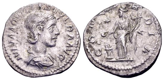 Aquilia Severa, wife of Elagabalus AD 218–222, AR Denarius (19 mm, 3.00 gram) Rome