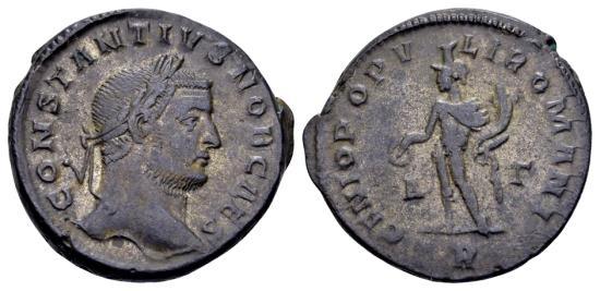 Constantius I Caesar AD 293-305, AE Silvered Follis (27 mm, 11.27 gram) Trier 296-297
