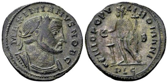 MAXIMIANVS NOB C; laureate and cuirassed bust r.