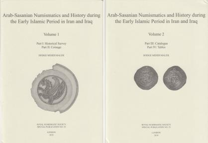 Arab-Sasanian Numismatics and History during the Early Islamic Period in Iran and Iraq by Hodge Malek, 2 volumes, A4, 759 pages which include 129 plates, red cloth, dust jackets. New. The first major work on the subject since the 1941 catalogue of coins in the British Museum. RNS Special Publication 55. NEW