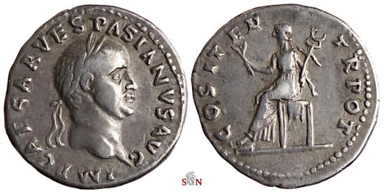 Vespasianus Denarius, struck 70 AD at Rome mint.