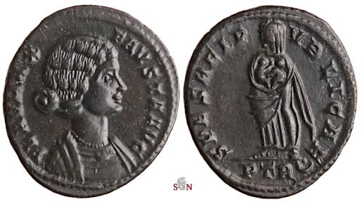 Fausta AE 18 mm, struck AD 325 - 326 at Trier mint.