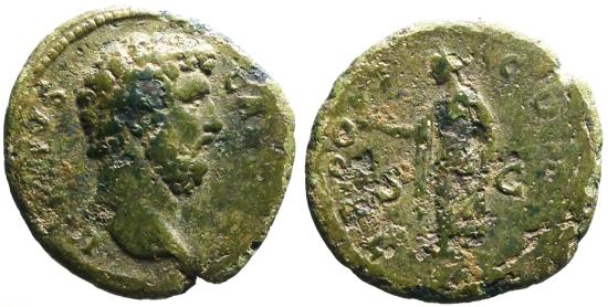 Rev: Spes advancing left, holding flower and lifting skirt.