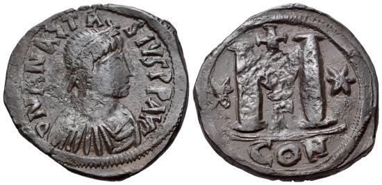 Anastasius I (AD 491-518). Æ 40 Nummi - FOLLIS. Constantinople, 498-518.