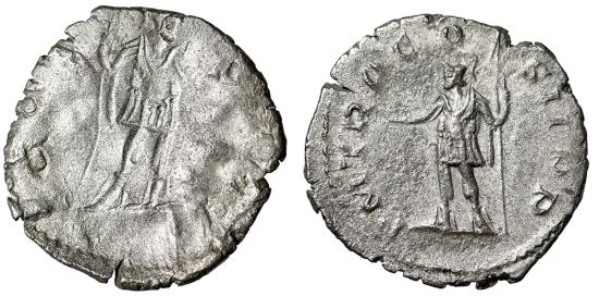POSTUMUS AR BROCKAGE ANTONINIANUS Treveri (Trier) Mint 262 AD Obverse: Reversed incuse imprint of the reverse Reverse: P M TR P CO-S II PP, Postumus standing left, holding globe and spear References: RIC 54ff Very Rare Size: 22mm, 2.98g Professional Numismatic Notes: Nearly extremely-fine and a very rare brockage!
