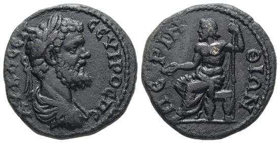 Reverse: ΠEΡINΘIΩN. Zeus seated left, holding long sceptre in left and patera in right