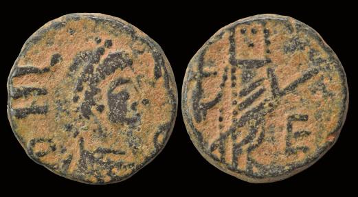 rev: Verina standing facing, holding cross on globe and transverse sceptr; b-E in fields