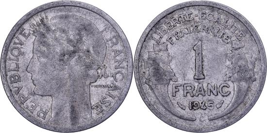 | | France, Franc, Morlon, 1945, Castelsarrasin, Aluminum, , KM:885a.3 | | | Morlon, Laureate head left, Cornucopias flank denomination and date | | FEATURES |