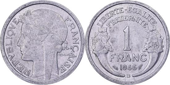 | | France, Franc, Morlon, 1946, Beaumont - Le Roger, Aluminum, , KM:885a.2 | | | Morlon, Laureate head left, Cornucopias flank denomination and date | | FEATURES |