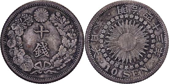 | | Japan, Mutsuhito, 10 Sen, Meiji Era, Yr. 43 (1910), Silver, | | | FEATURES |