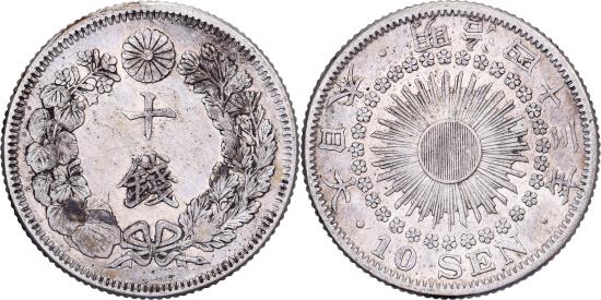 | | Japan, Mutsuhito, 10 Sen, Meiji Era, Yr. 43 (1910), Silver, | | | FEATURES |