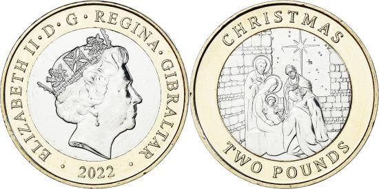 | Coin, Gibraltar, 2 Pounds, 2022, Christmas, , Bi-Metallic |