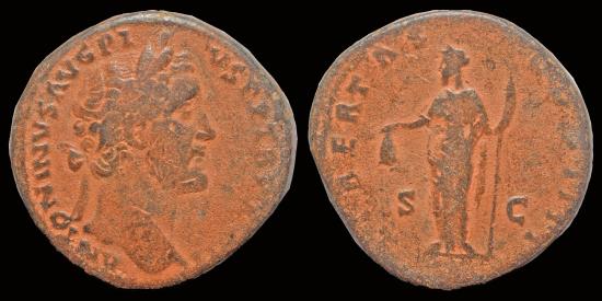 obv: ΛNTONINVS ΛVG PIVS P P TR P [XVIII], laureate head right, with slight drapery on both shoulders