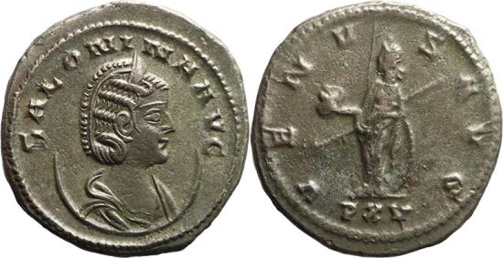 Obverse: SALONINA AVG Diademed and draped bust right, wearing stephane, set on crescent