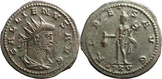 Obverse: GALLIENVS AVG, radiate, draped and cuirassed bust right, seen from behind