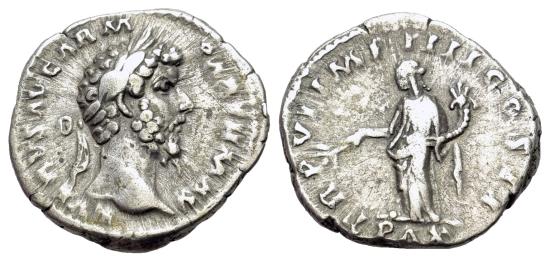 Lucius Verus (AD 161-169). AR Denarius. R/ PAX
