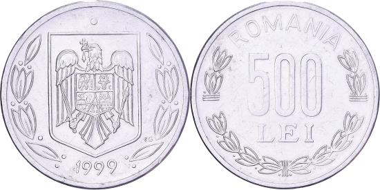 | | Romania, 500 Lei, 1999, Aluminum, , KM:145 | | | Shield within sprigs, Value within 3/4 wreath | | FEATURES |
