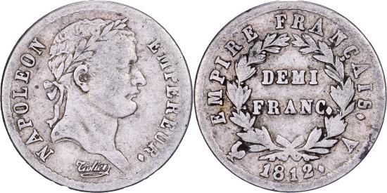 | | France, 1/2 Franc, Napoléon I, 1812, Paris, Silver, , Gadoury:399 | | | Napoléon I, Laureate head right, Denomination within wreath, NAPOLEON EMPEREUR. | | FEATURES |