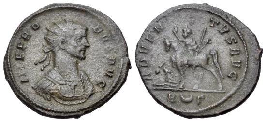 Probus (AD 276-282). Radiate. Rome, AD 279. R/ Probus, holding sceptre and raising arm, on horseback