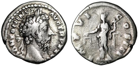 Marcus Aurelius AR Denarius "Portrait & Aequitas" Good Fine