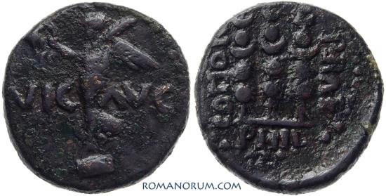 Struck to commemorate the battle of Philippi of 42 BC, where Brutus and the Republicans, were defeated.