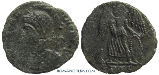 Laureate, helmeted bust of Constantinopolis left, reverse spear.