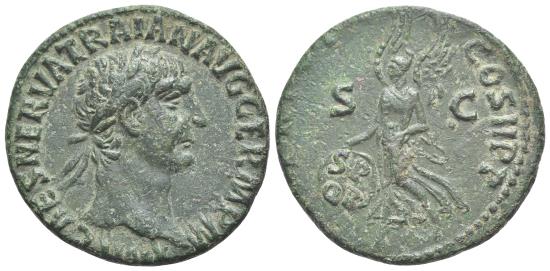 Trajan (AD 98-117). Æ As. Rome, 98-9. R/ VICTORY