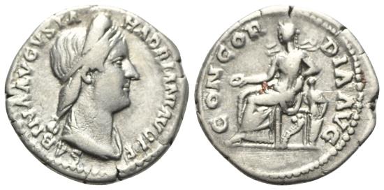 Sabina (Augusta, 128-136/7). AR Denarius. Rome, c. 128-134. R/ Concordia seated