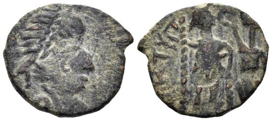 Honorius (?). 393-423 AD. AE4 (1.21g, 14mm). ‘Barbaric issue’. 5th Century AD. Obv.: [D N HONORIVS P F AVG], pearl-diademed, helmeted and cuirassed bust. Rev.: [VIRTVS EXERCITI], emperor standing to left, holding spear and resting on shield; Victory crowning him with a wreath on right. Short flan, VF.