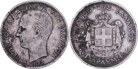 | | Greece, George I, Drachma, 1873, Paris, Silver, , KM:38 | | | Head left, Arms within crowned mantle | | FEATURES |