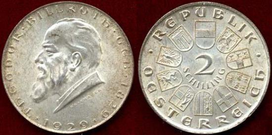 29mm silver commemorative of birth of Theodor Billroth Condition: Uncirculated catalog reference KM#2844