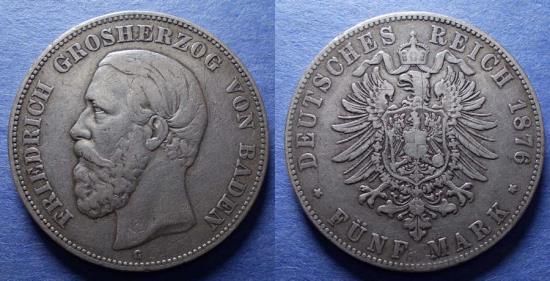 Germany, Baden, Friedrich I (Grand Duke) 1876 G, Silver 5 Mark