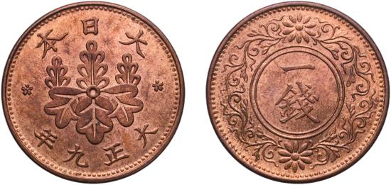 Japan 1920 (9 年九正大) 1 Sen - Taishō Bronze Japan Mint (118829256) 3.78g UNC Y 42 JNDA 01-48 Schön 20