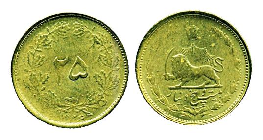 IRAN, PAHLAVI: MUHAMMAD REZA SHAH (1320-1357 SH/ 1941-1979), Aluminum-Bronze 25 Dinar ( 19 mm), Struck SH 1326 (1947), It is