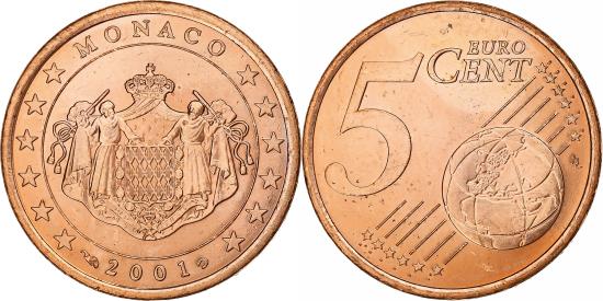 | | Monaco, Rainier III, 5 Euro Cent, 2001, Paris, Copper Plated Steel, | | | FEATURES |