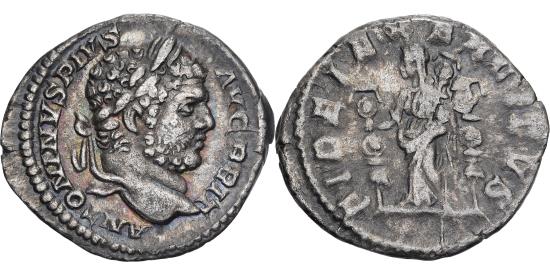 | | Caracalla, Denarius, 210-213, Rome, Silver, , RIC:213 | | | Head of Caracalla, laureate, bearded, right, Fides, standing left, holding standard in right hand and legionary eagle in left hand; to right, a third standard, Supplied with its old collector's ticket. RIC IV Caracalla 213, ANTONINVS PIVS AVG BRIT, FIDEI EXERCITVS | | FEATURES |