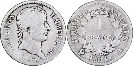 | | Coin, France, Napoleon I, Franc, 1811, Paris, , Silver, KM:692.1 | | | Napoléon I, Laureate head right, Denomination within wreath, NAPOLEON EMPEREUR | | FEATURES |