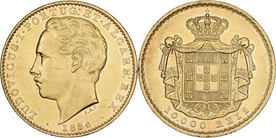 | | Portugal, Luiz I, 10000 Reis, 1884, Gold, , KM:520 | | | Head left, Crowned mantled arms, LUDOVICUS I... | | FEATURES |