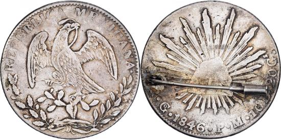 | | Mexico, 8 Reales, 1846, Mexico, Silver, , KM:377.4 | | | Facing eagle, snake in beak, Varieties exist. | | FEATURES |