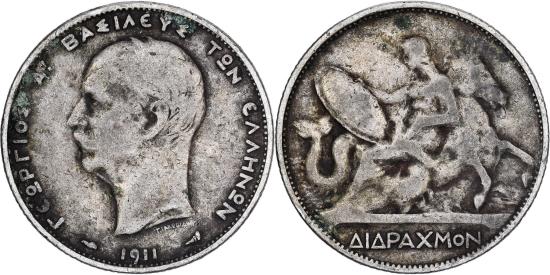 | Greece, George I, 2 Drachmai, 1911, Silver, , KM:61 |