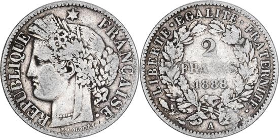 | | France, 2 Francs, Cérès, 1888, Paris, Silver, , Gadoury:530a | | | Cérès, Laureate head left, Denomination within wreath | | FEATURES |
