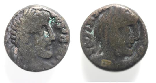 Arabia. Nabataean Kings. Rabbel II (AD 70/1-106/7). AR sela (13mm, 3.10g). Petra mint. Struck c. 80/1-901/2. Laureate bust of Rabbel II r.; date off flan to l. / Velied bust of Gamilat r. Cf. Barkay 226-234.