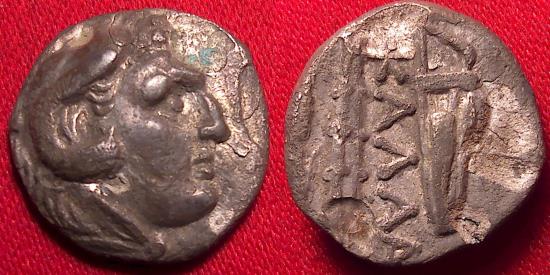 KALLATIS, MOESIA AR silver hemidrachm. 3rd-2nd century BC. Herakles / Grain ear, club & bowcase. Scarce.